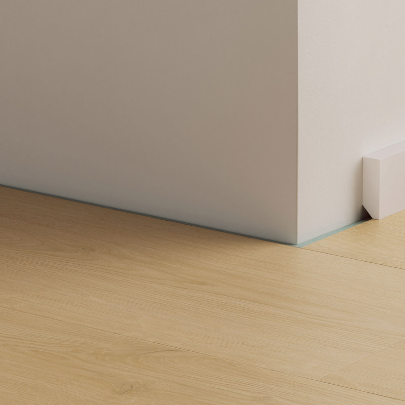 Dyskretne wykończenie podłogi. Można także użyć jako wykończenie w połączeniu z istniejącymi listwami przyściennymi.