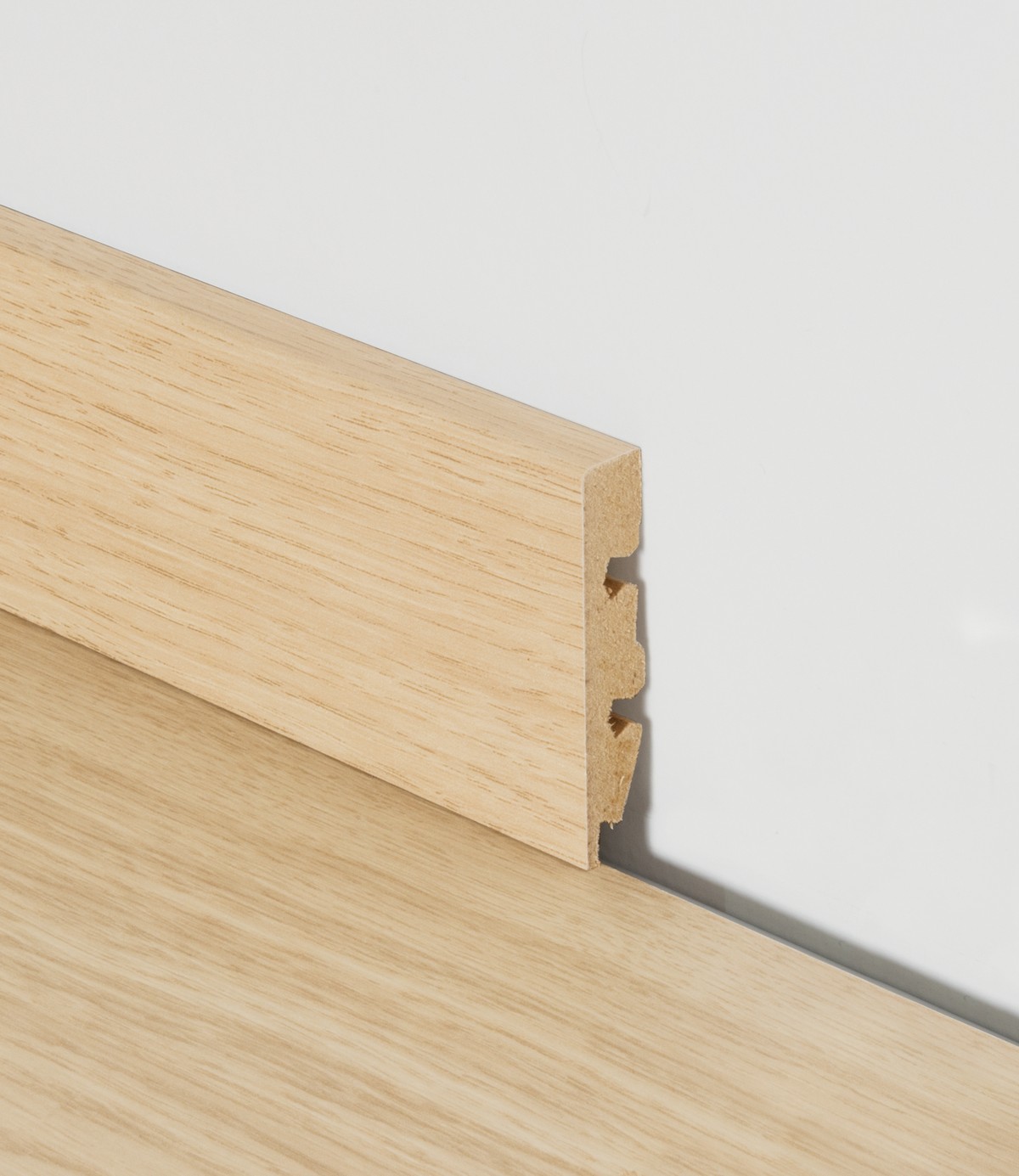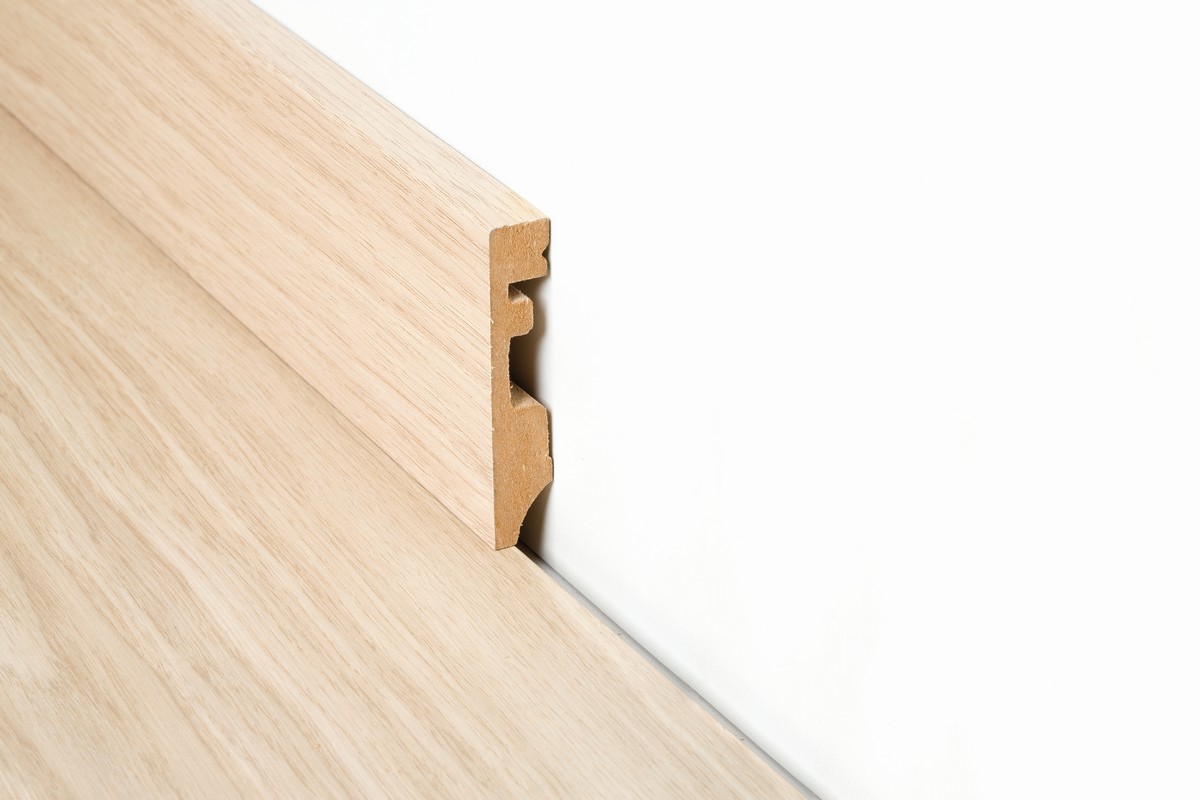 Klarowne linie listwy przyściennej Parquet nadają klasy każdej podłodze z desek. Na tylnej powierzchni listwy znajduje się rowek do ułożenia kabli telefonicznych lub komputerowych.