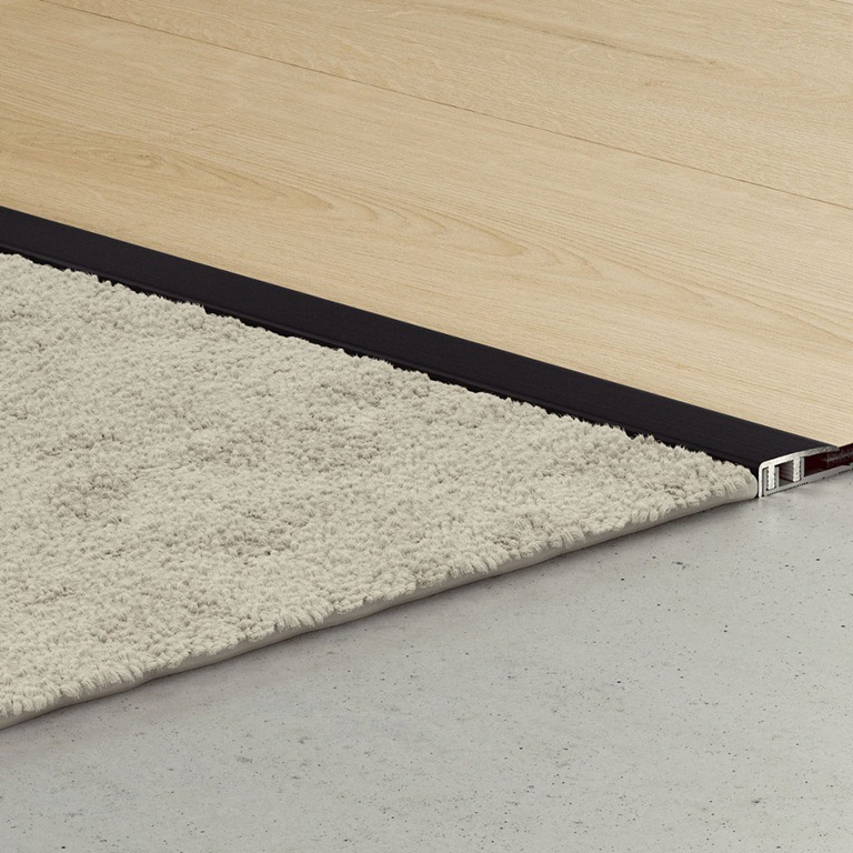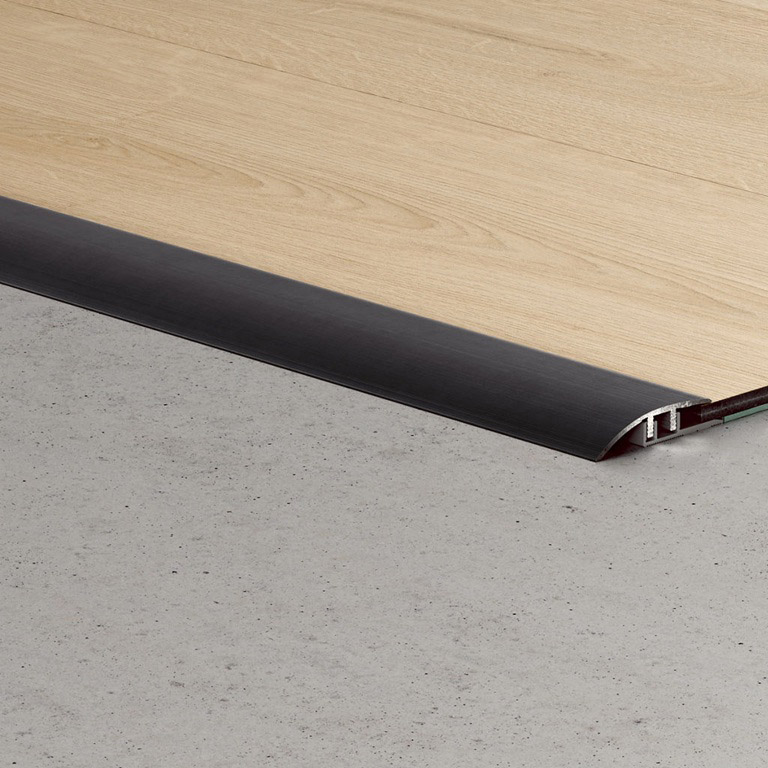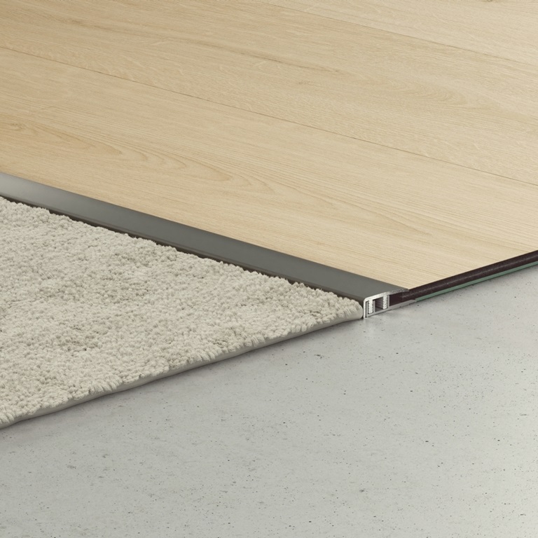 Ten bardzo smukły i elegancki profil może być użyty do wykonania przejścia między wyższą i niższą podłogą. Może być stosowany z podłogami winylowymi na zamek Uniclick. Odporne na zużycie aluminium wysokiej jakości.