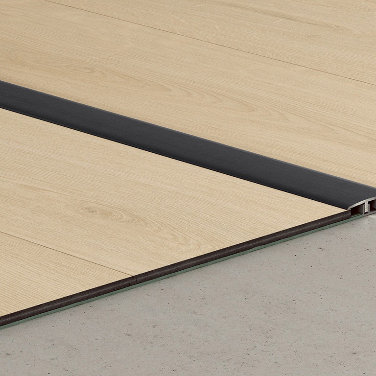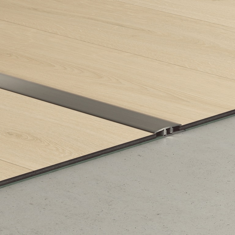 Ten bardzo wąski i elegancki profil może być stosowany do zakrycia dylatacji pomiędzy 2 podłogami o tej samej wysokości np. przy wejściu do drzwi lub w dużym pomieszczeniu/korytarzu, gdzie wymagana jest dylatacja. Może być stosowany z podłogami Vinyl Click (+). Odporne na zużycie aluminium wysokiej jakości.