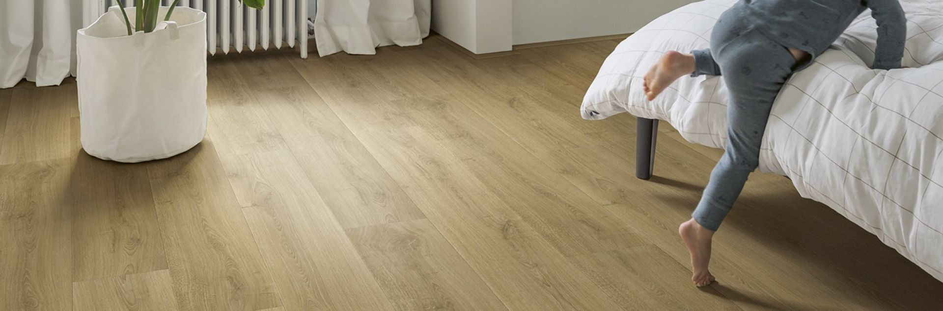 Pomysł był prosty: chcieliśmy mieć tańszą i łatwiejszą w utrzymaniu alternatywę dla tradycyjnej podłogi drewnianej, która wyglądałaby równie pięknie. Coś, co osiągnęliśmy dzięki laminatowi. Nowa marka Quick-Step szybko podbiła serca zarówno starych, jak i młodych. Dzięki wyjątkowym projektom odmłodziliśmy ludzkie sypialnie, kuchnie, łazienki, salony i nie tylko. Jednocześnie pozostajemy wierni naszym zobowiązaniom w zakresie zrównoważonego rozwoju, polegającym na ponownym wykorzystaniu materiałów pochodzących z recyklingu i tworzeniu trwałych produktów.