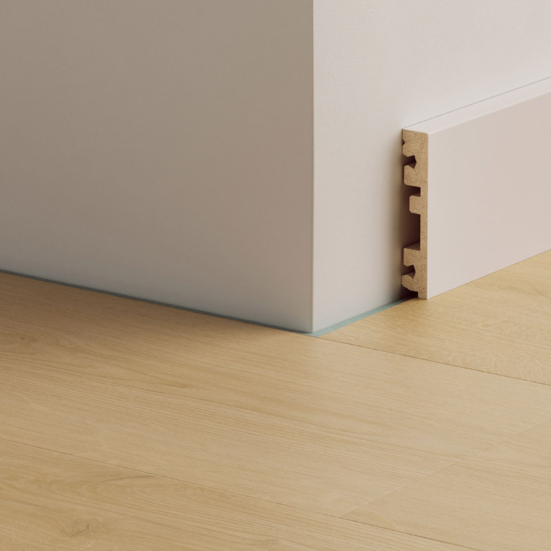 Malowalna średnia listwa przypodłogowa z dołączonym systemem Uniclic zapewniającym jednolite wykończenie i prosty montaż, nawet w mniejszych pomieszczeniach. Długość 240cm.