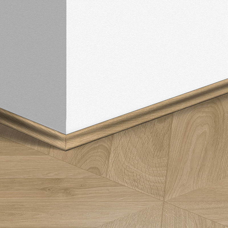 Klarowne linie listwy przyściennej Parquet nadają klasy każdej podłodze z desek. Na tylnej powierzchni listwy znajduje się rowek do ułożenia kabli telefonicznych lub komputerowych.