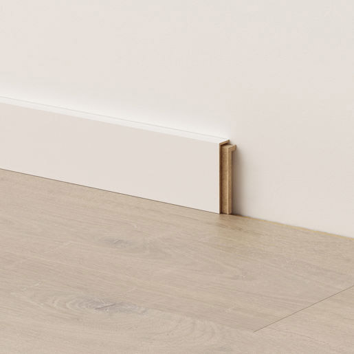 Malowane małe listwy przypodłogowe z dołączonym systemem Uniclic zapewniającym jednolite wykończenie i prosty montaż, nawet w mniejszych przestrzeniach. Długość126cm.