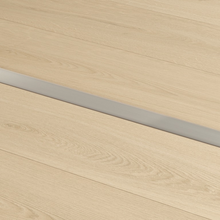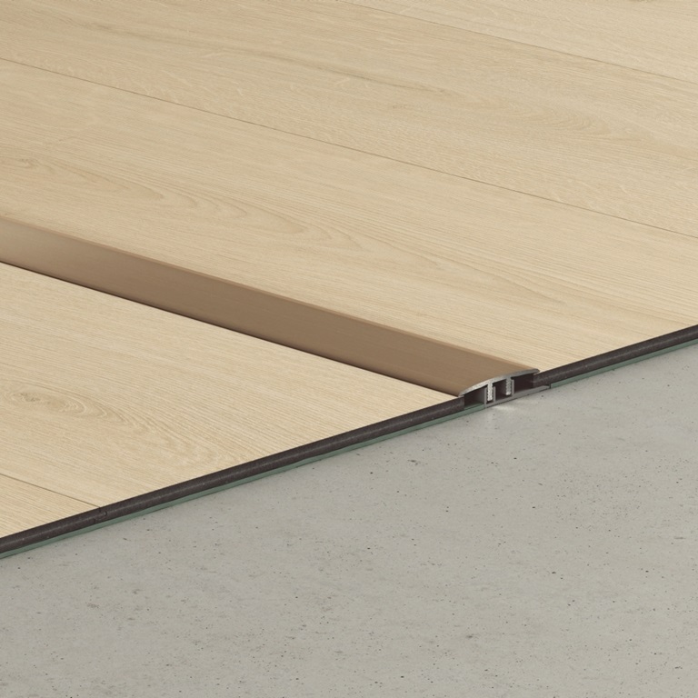 Ten bardzo wąski i elegancki profil może być stosowany do zakrycia dylatacji pomiędzy 2 podłogami o tej samej wysokości np. przy wejściu do drzwi lub w dużym pomieszczeniu/korytarzu, gdzie wymagana jest dylatacja. Może być stosowany z podłogami Vinyl Click (+). Odporne na zużycie aluminium wysokiej jakości.
