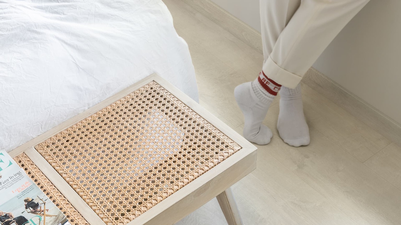 KROK 1: Zamontuj listwy przypodłogoweKońcowy wygląd podłogi Vinyl Flex zależy od jakości wykończenia. Na szczęście w Quick-Step mamy listwy przypodłogowe dopasowane do każdego projektu. Montaż to bułka z masłem: